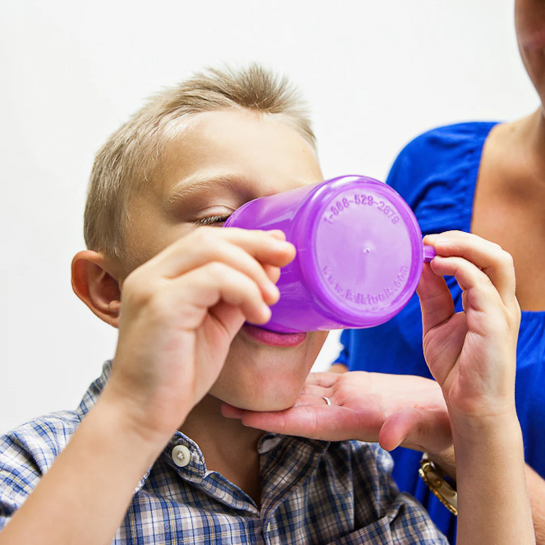 Apto para clientes de todas las edades, el Vaso con Tapa Cóncava es una alternativa terapéutica a los vasos con boquilla (sippy cups). Cuenta con dos asas que ayudan a mantener las manos en la línea media y fomentan la alimentación independiente.